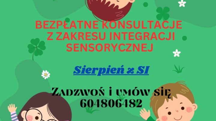 Drodzy Rodzice! Zapraszamy na bezpłatne konsultacje z zakresu Integracji Sensorycznej. Zapisy pod numerem: 📞 604 806 482
